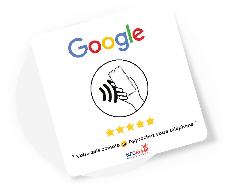 Incite les clients à laisser un avis Google d’un simple scan. Visible, passif et 100% plug & play.