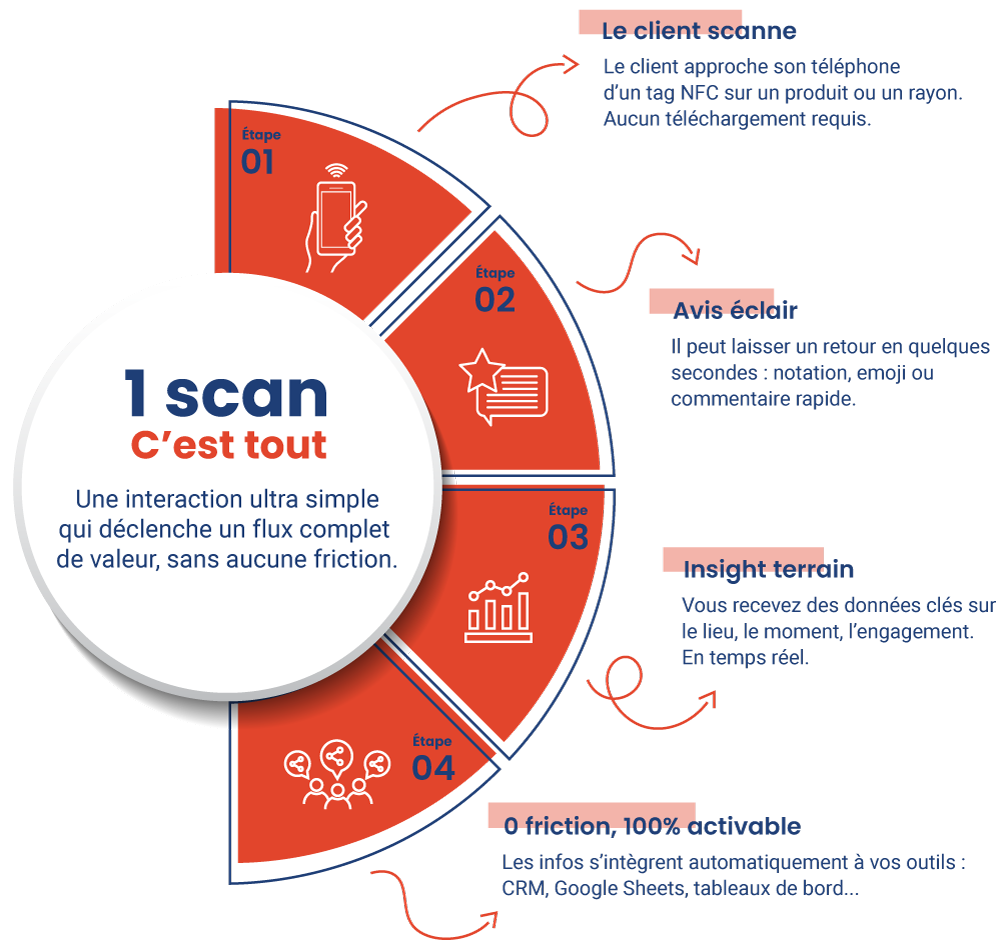 Découvrez comment un simple scan NFC transforme l’interaction client en données activables, sans effort, sans application.