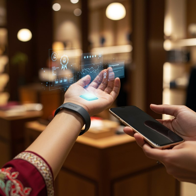 Le vendeur porte un bracelet NFC